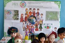 Стенд "2021 год- год родных языков и народного единства"./ "Туган телләр hәм халыклар бердәмлеге елы "на багышланган стенд. 24.02.2021