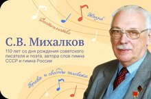 «110 ЛЕТ СО ДНЯ РОЖДЕНИЯ СОВЕТСКОГО ПИСАТЕЛЯ И ПОЭТА, АВТОРА СЛОВ ГИМНА СССР И ГИМНА РОССИИ С. В. МИХАЛКОВА» Цель занятия: расширять представления обучающихся о творчестве С. В. Михалкова, воспитывать нравственно-ценностные взаимоотношения со сверстниками на примерах героев произведений С. В. Михалкова, развивать познавательную активность и интерес к творчеству писателя.