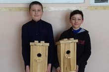 Ребята на уроках технологии смастерили скворечники для пернатых друзей. Они очень старались, домики получились очень красивые, просторные и уютные. После уроков их повесили на деревья перед школой.