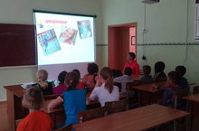Мәдәният йорты хезмәткәрләре һәм авыл китапханәсе белән берлектә мәктәп яны лагерында "Россия- минем Ватаным" темасына телдән журнал үткәрелде.