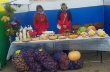 Район үзәгендә үткәрелгән ярминкәдә мәктәп бакчасында үстерелгән уңыш белән катнаштык.