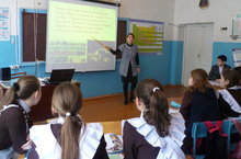 Мәктәпнең эчке контроль графигы нигезендә, I категорияле инглиз теле укытучысы Обечова Римма Сергбай кызы 7 нче сыйныф укучылары белән "English- speaking countries" дигән темага ачык дәрес үткәрде.
