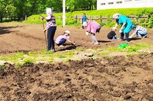 На территории школы расположен пришкольный участок. На нем мы сажаем овощи для нашей столовой. В этом году посадили лук, морковь, свеклу. Старшеклассники посадили картошку.