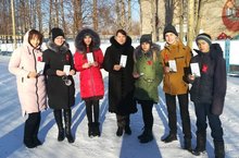 В рамках мероприятия также состоялась акция «Мы – против!». Во время акции ученики раздали буклеты, прикрепили красные ленты к жителям села Кутемели. -