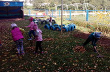 Балалар кечкенә тырмалар ярдәмендә коелган яфракларны җыйдылар, өлкәннәргә мәйданчыкны җыештырырга ярдәм иттеләр. Үзләренең эш нәтиҗәсен күреп, балалар бик куандылар.