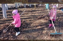В рамках санитарно-экологического двухмесячника продолжаются субботники. Не осталась в стороне и дошкольная группа: убрали двор, побелили деревья. И малыши помогали воспитателям, как могли, прихватив с собой орудия труда.