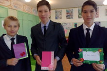8нче сыйныф укучылары үз куллары белән әниләренә бәйрәм открыткасы ясадылар.