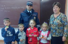 Бүген укучыларыбыз өлкән инспектор Ахатов Ф.Ф. белән очрашты. Ул юлда йөрү куркынычсызлык кагыйдәләрен аңлатты һәм беренче сыйныф укучыларына яктылык кайтаручы предметлар таратты.