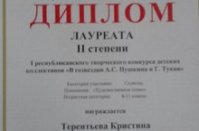 Ученица 8го класса Терентьева Кристина стала лауреатом II степени в республиканском творческом конкурсе детских коллективов "В созвездии А.С.Пушкина и ГюТукая". Руководитель Э.Р.Аглямова