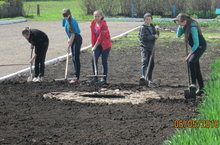 Мәктәп укучылары бәйрәм алдыннан һәйкәл тирәсен чистартуларын дәвам итәләр