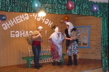 Укытучылар сәхнәдә 27.11.2013 Мәктәбебезнең укытучылары, "Аналар көне" уңаеннан, Ф.Садриевның "Җәмиләнең җеннәнүе" исемле комедиясен уйнадылар.