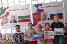 В пришкольном лагере "Кояшкай" сегодня - День России. Воспитатель Ризида Фаритовна провела познавательную беседу о нашей великой стране. Мы вспомнили символы государства, повторили Гимн Росссии. Потом проводилась игра - викторина "Мои права". Праздник закончился флешмобом "Я, ты, он, она, вместе целая страна