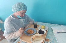блюда полностью подаются в тёплом виде, санитарное состояние отличное, сотрудники столовой работают в спец.одежде, дети едят с большим удовольствием.