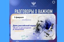 Сегодня во всех классах было проведено очередное занятия из цикла «Разговоры о важном» на тему "День российской науки" (190 лет со дня рождения Д. Менделеева)