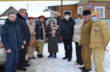 Бүген район җитәкчелеге белән бергә "Юнармия" сафларында торучы укучыларыбыз Әфган сугышында һәлак булган авылдышыбыз Мансур Хисамовның әнисе Әминә апа белән очрашуга бардылар.