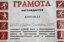 Район күләмендә өстәл теннисы буенча уздырылган ярышта бенең мәктәп командасы 2 урында!