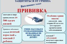 Вакцинация – это наиболее надежный и эффективный метод защиты от заболевания гриппом и показана для каждого человека, в первую очередь для детей и пожилых людей, а также для лиц, имеющих различные хронические заболевания.