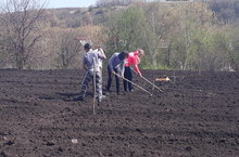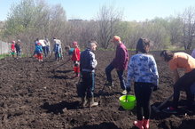 Күмәк көч белән буген мәктәп янындагы бакчада бәрәңге утырттык