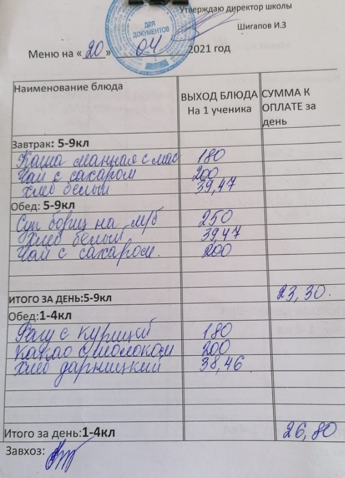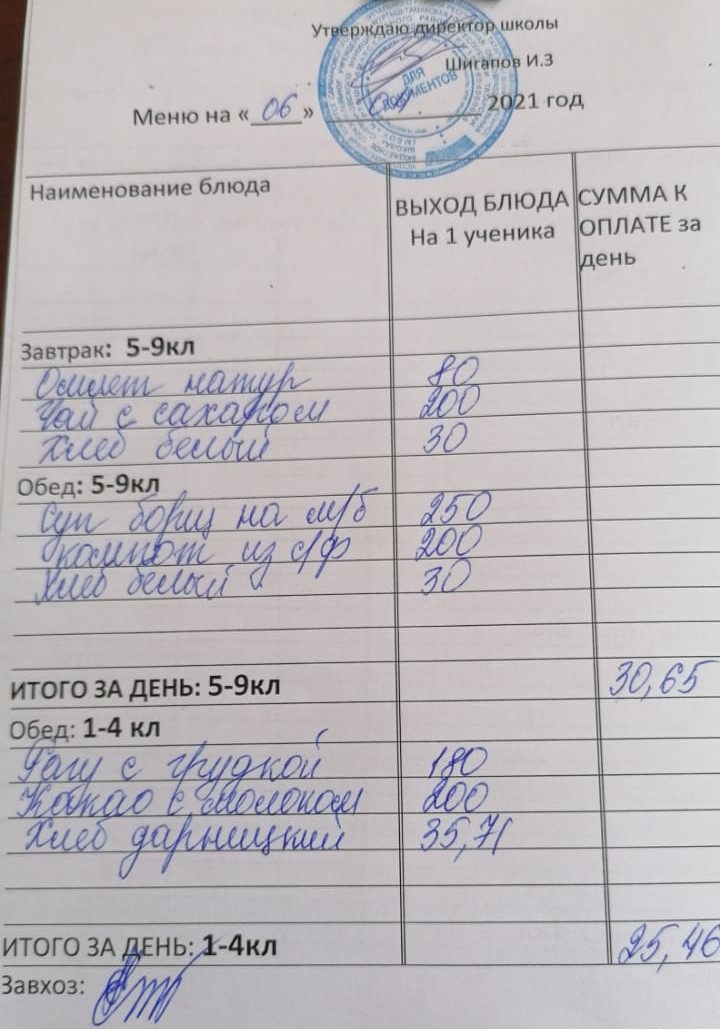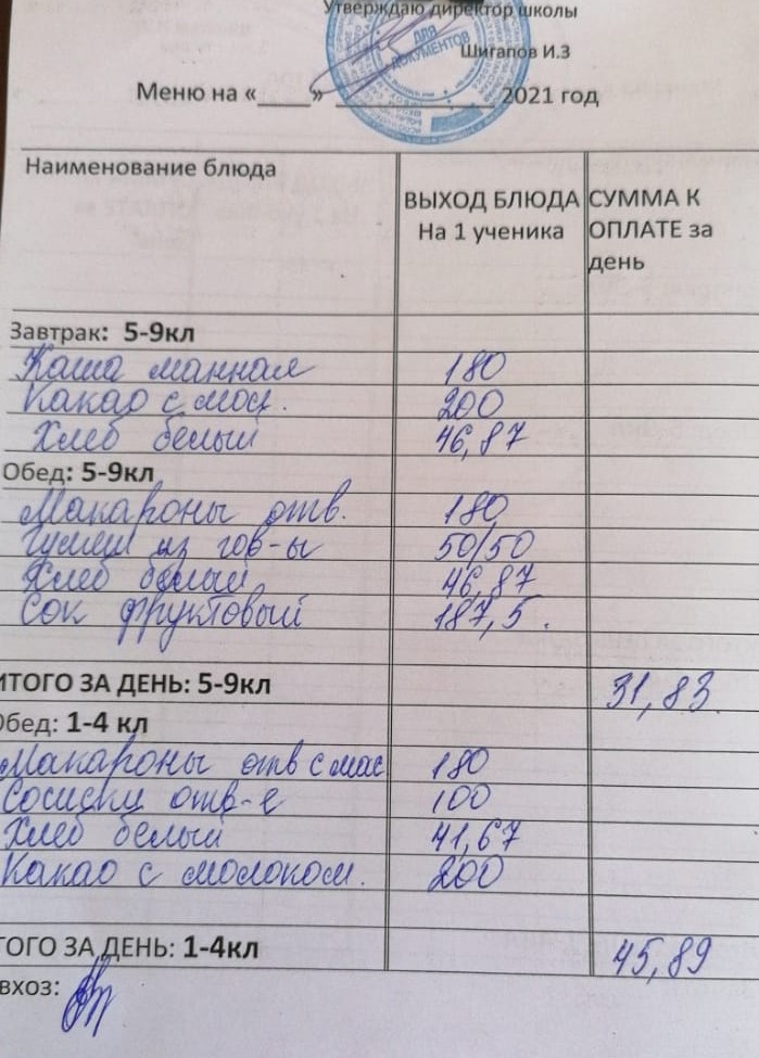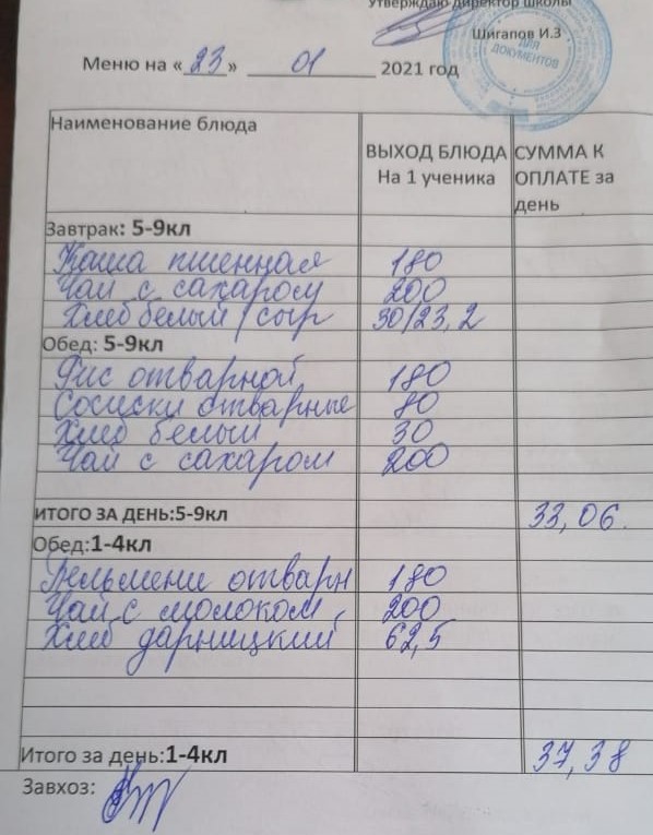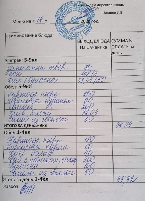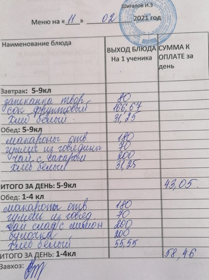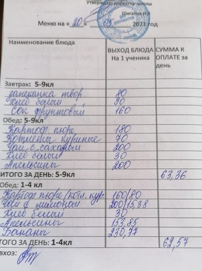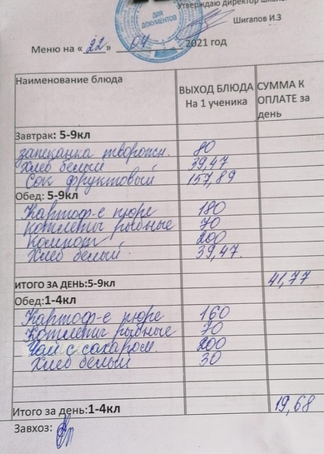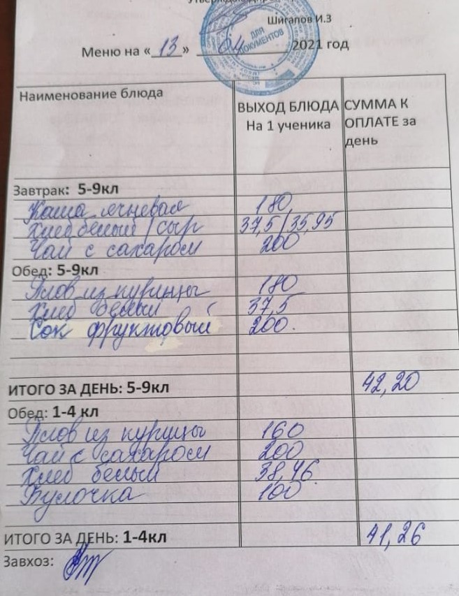 Меню весенне-летний на 2020-2021 учебный год/2020-2021 уку елы өчен меню