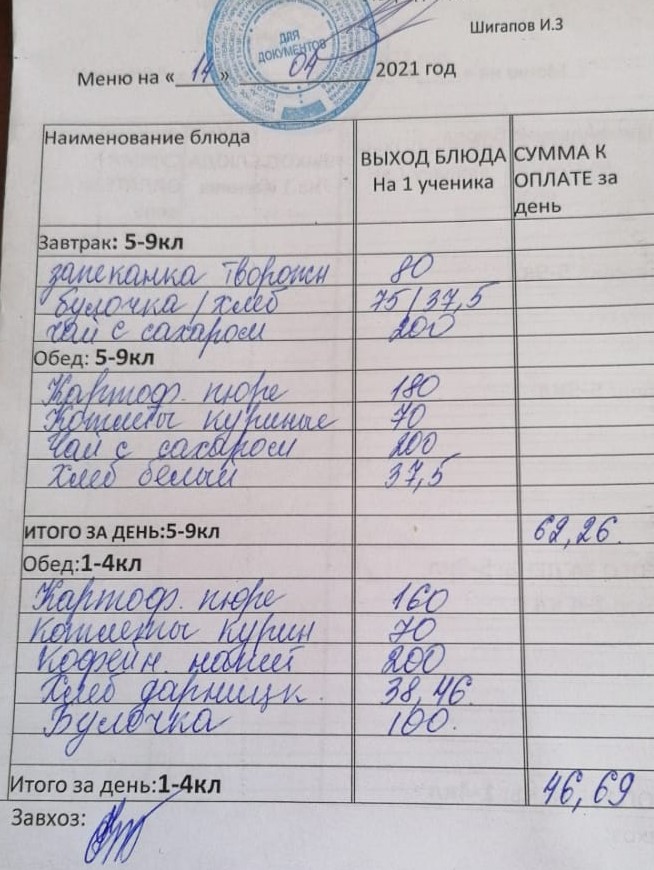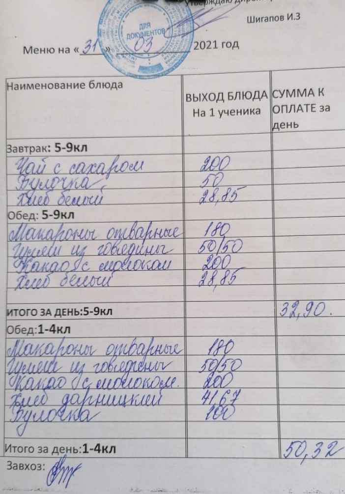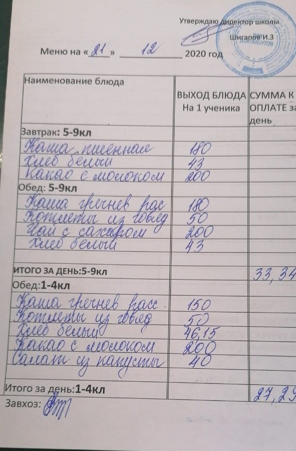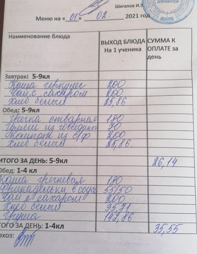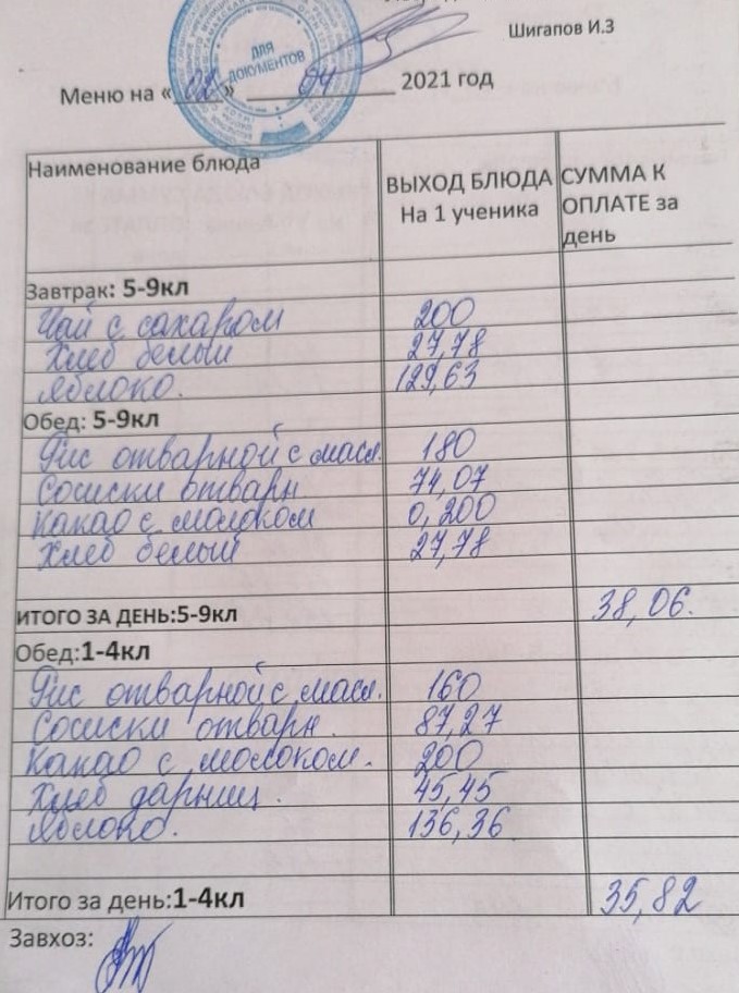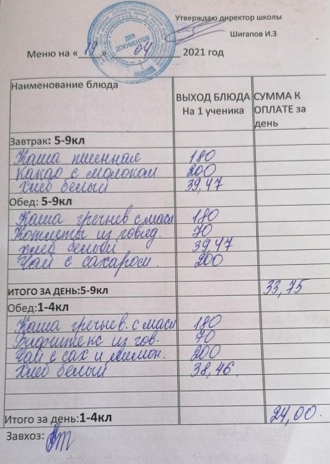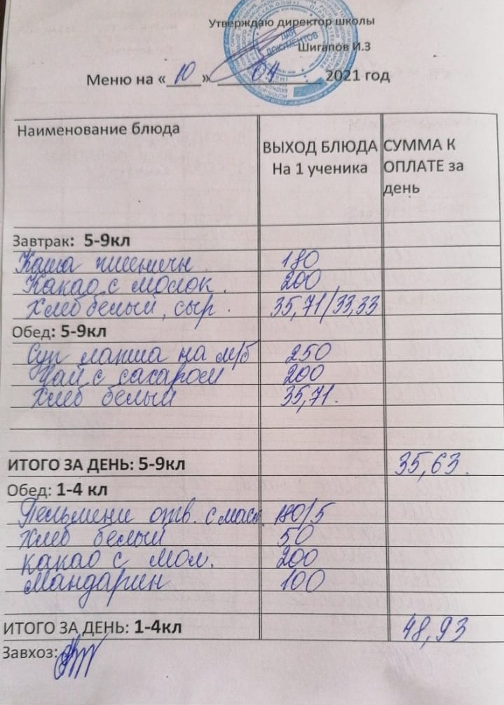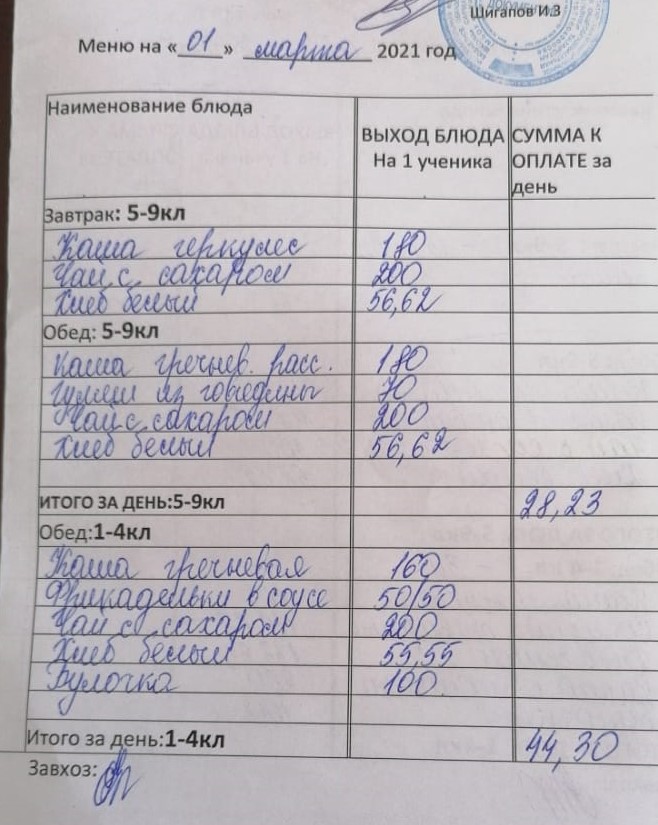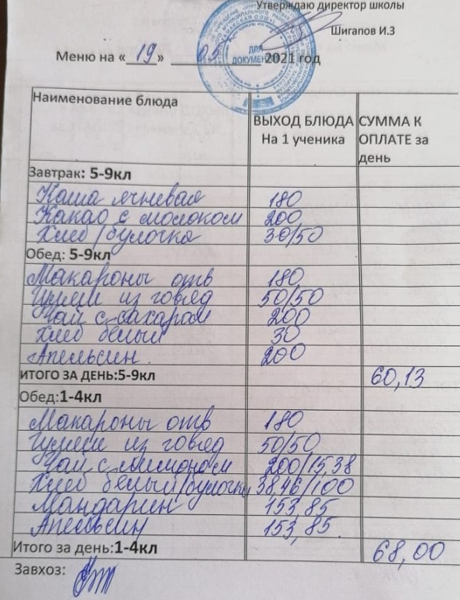 Меню весенне-летний на 2020-2021 учебный год/2020-2021 уку елы өчен меню