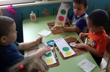 Кечкенәр белән кисеп ябыштыру:"Төсле туплар".Апликация в младшей группе. 05.04.2019