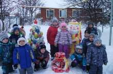 Балалар бакчасы әти-әниләре персонажлар булып, авыл балаларын өйдән-өйгә йөреп котладылар.(Кыш бабай,кар кызы,шүрәле,убырлы)