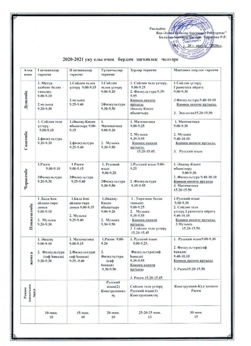 Режим дня на 2020-2021 учебный год.2020-2021 нче уку елына көндәлек эшчәнлек .
