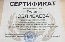 с 26 июля по 8 августа 2022 г. Гулия Юзлибаева, воспитанница МБУДО «Джалильская ДМШ им. М.Г.Юзлибаева» Сармановского МР РТ класса «Специальное фортепиано» преподавателя Лилии Акрамовны Давлетшиной, заслуженного работника культуры Республики Татарстан прошла обучение в XIII Международной летней школе творчества г. Таруса у Рэма Геннадьевича Урасина, Лауреата международных конкурсов, Народного артиста Республики Татарстан, доцента Казанской государственной консерватории им. Н.Г.Жиганова, концертирующего пианиста.