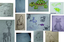 Работы учащихся 2 А и 2 Б класса на тему: "Наброски животных".