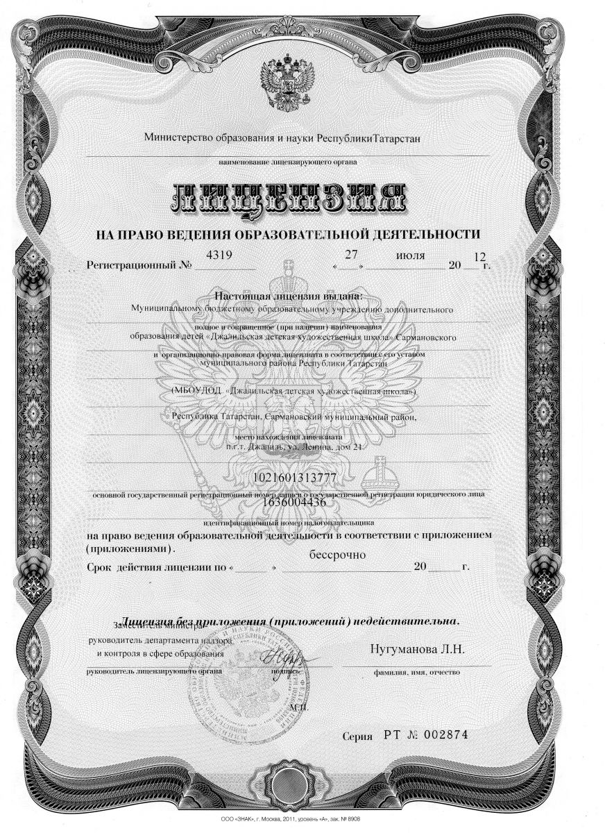 Лицензия ДХШ