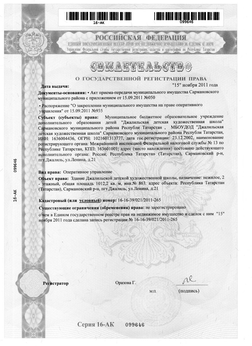 Муниципальное бюджетное учреждение дополнительного образования "Джалильская детская художественная школа" Сармановского муниципального района Республики Татарстан