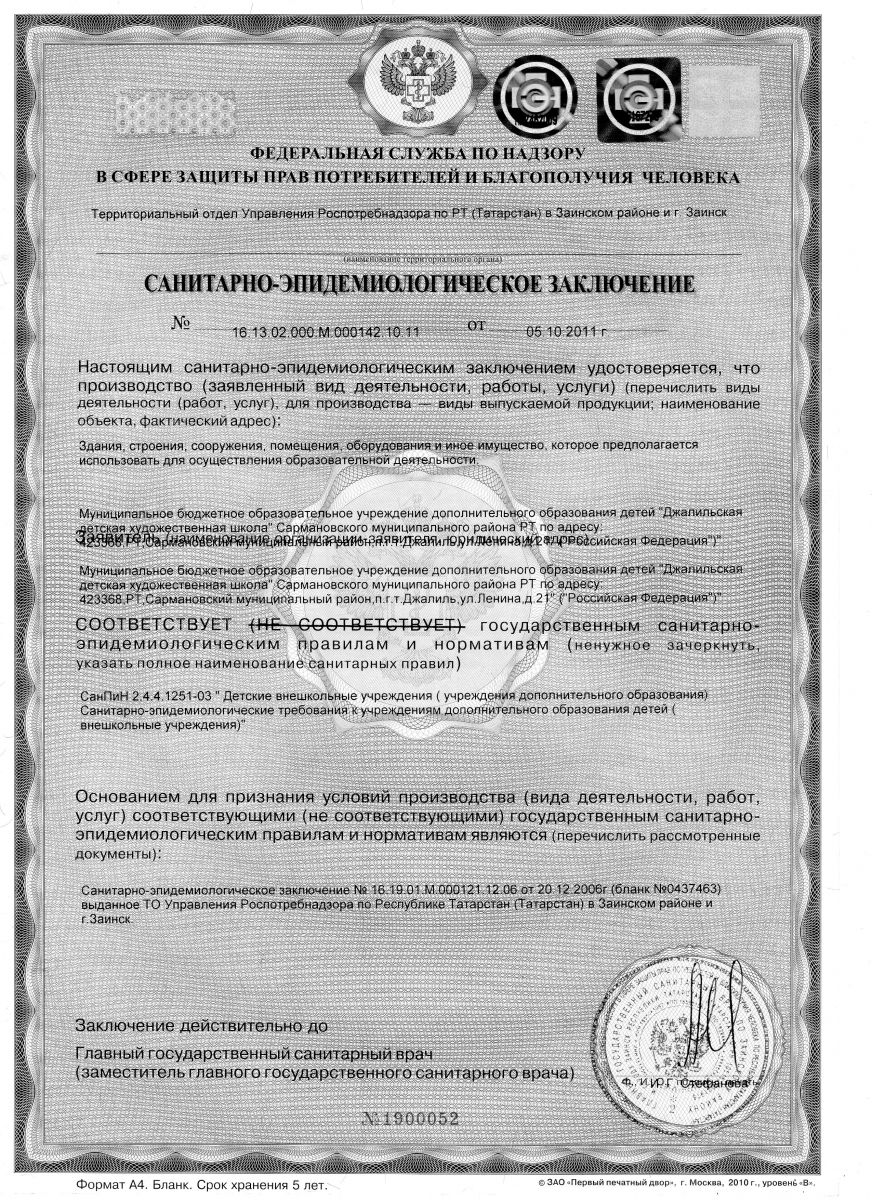 САНИТАРНО-ЭПИДЕМИОЛОГИЧЕСКОЕ заключение
