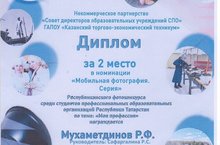 Работа (серия фотографий «Моя профессия родом из земли») студента 82 группы Сармановского аграрного колледжа Мухаметдинова Рамиля Фаридовича удостоена Диплома II степени Республиканского фотоконкурса среди студентов профессиональных образовательных организаций Республики Татарстан по теме «Моя профессия».
