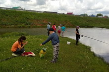 Сегодня в пришкольном лагере "День рыбака". Ребята вместе с воспитателями ходили в поход на речку. Сначала дети прослушали инструктаж, ответили на вопросы по безопасности, а затем все дружно отправились на берег ближайшей речки. Мальчики взяли с собой удочки, подкормку, девочки пледы, мячи. В результате были пойманы шесть рыб. 19.06.2017