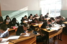 Во время общешкольной линейки приняли поздравления ученики принявшие участие в республиканском конкурсе на присуждение премии имени Клары Булатовой.: