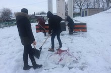 Юнармейцы школы очистили территорию памятника от снега 04.02.2020
