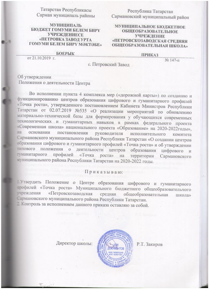 - Положение о Центре образования цифрового и гкманитарного профилей "Точка роста"