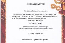 Наш детский сад стал победителем дистанционного зонального конкурса среди дошкольных образовательных учреждений "Театр здоровья" в номинации "Лучшая декорация" 02.03.2022