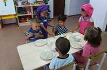 Бүгенге көн “Ашларыгыз тәмле булсын!” темасы астында узды.Тәрбиячеләр балалар белән “Өстәл артында утыру кагыйдәләре” турында әңгәмә кордылар.Һәрвакыттыгыча ашау вакытында балалар дежур тордылар/Сегодняшний день прошел под девизом “Приятного аппетита!”.Воспитатели провели беседу на тему “Правила поведения за столом” 09.08.2018
