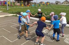 Дети любят играть в татарские народные игры во время прогулок/ Балалар татар халык уеннарын бик теләп уйныйлар. 26.07.2018