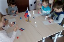 Воспитанники средней группы ко Дню России сделали аппликацию-флаг Российской Федерации/Уртанчылар төркеме балалары Россия көненә аппликация-флаг ясадылар. 11.06.2018