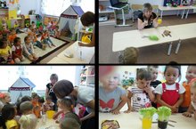 Беренче кечкенәләр төркеме балалары прогулканы файдалы үткәрәләр: тәрбиячеләре Рәмилә Әмирҗан кызы ярдәмендә су белән тәҗрибәләр үткәрәләр,вак моторикаларын үстерәләр,хәрәкәтле уеннар уйныйлар.