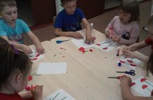 Зурлар төркеме балалары якынлашып килүче 9 май-Җиңү бәйрәме уңаеннан открыткалар ясадылар. 03.05.2017