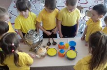 Бер ачасы иде, ачасы.Уртанчылар төркеме балалары татар авылы көнкүреше белән таныштылар,хәзерге һәм элекке заманда кулланылган савыт-саба турындагы белемнәрен ныгыттылар.