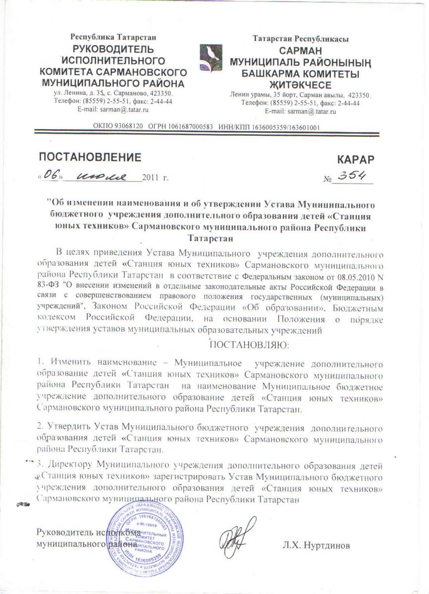 Короткое название: МБОУ ДО "СЮТ" Сармановского муниципального района РТ