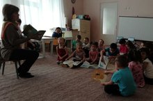 Сегодня библиотекарь сельской библиотеки Хайретдинова Сария провела беседу с детьми, посвященный ко дню детской книги./Китапханәче Хайретдинова Сария белән очрашу узды.