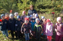 Сегодня с детьми старшей группы ходили на экскурсию в осенний лес. В рамках недели "Мой родной край" ознакомились с природой, растительностью родного края. Дети любовались красотой родной природы. /Бүген зурлар төркеме белән урманга сәяхәт ясадык. Безнең якларда үсә торган усемлекләр белән таныштык. Көзге табигатьнең матурлыгы белән сокландык.