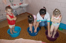 Шәфкать туташы Карпова Э.Х балаларны чыныктыру максатыннан төрле алымнар куллана.
