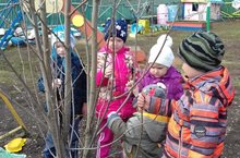 В рамках санитарного двухмесячника, сотрудники детского сада убирают территорию.// Бакча хезмэткэрлэре, санитар икеайлык кысаларында, эйлэнэ- тирэне чистарта. 16.04.2021