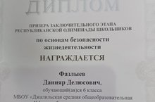 С 30 января по 3 февраля 2023 года прошёл заключительный этап республиканской олимпиады школьников по биологии. Аюпов Данияр, ученик 8 класса Джалильской СОШ №1 стал призёром. Учитель Шаяхметова Рима Мубараковна. Молодцы!!! Поздравляем!!!